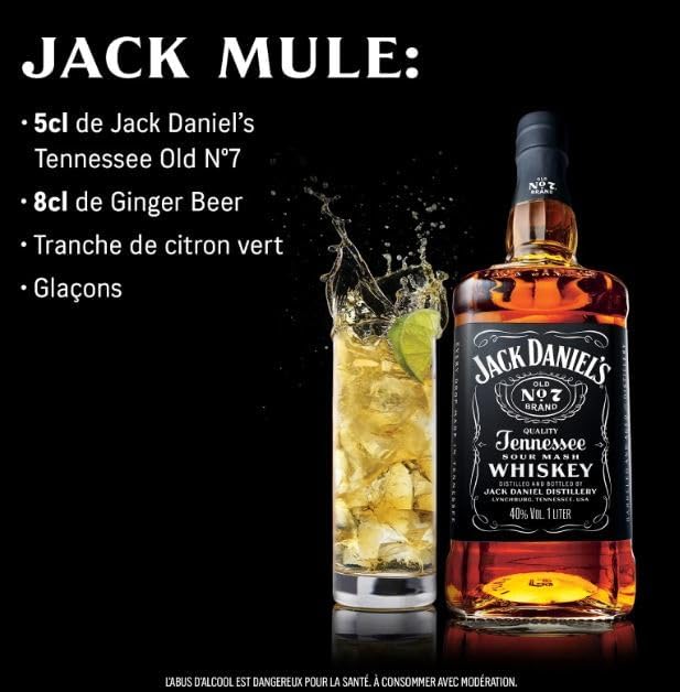 PARFAIT POUR LES COCKTAILS : Le whisky Jack Daniel’s se savoure pur, sur glace ou en cocktail. Associé à de la Ginger beer, idéale pour relever la douceur du célèbre Tennessee whiskey, on obtient une boisson rafraîchissante et pleine de caractère
