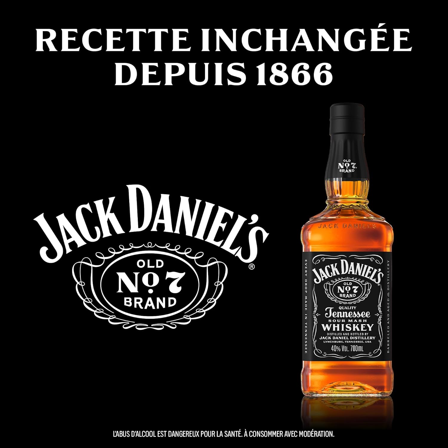 WHISKY D’EXCEPTION : Jack Daniel’s Old N°7, Tennessee Whiskey filtré sur charbon de bois d’érable, iconique depuis plus de 150 ans. Avec ses notes riches de vanille, caramel et chêne toasté, le whisky Jack Daniel’s est apprécié dans le monde entier.